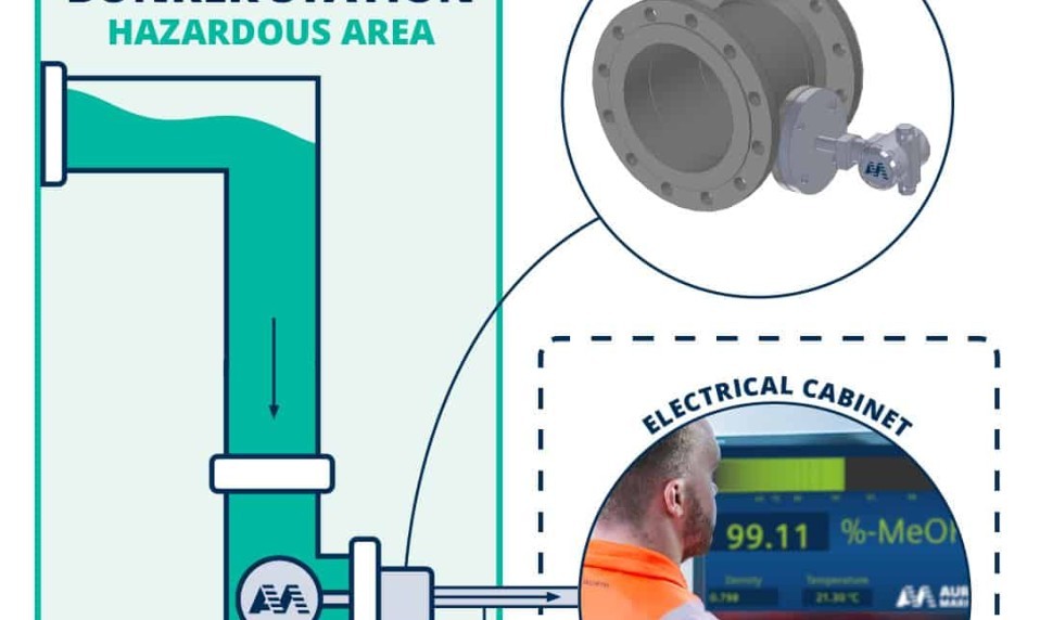 Auramarine’in verdiği örneğe göre; bir Ro-Ro gemisinin yılda 27.000 ton yeşil metanol tüketmesi ve metanolün ton başına ortalama 1.196 avro fiyatla temin edilmesi durumunda, yakıttaki %5 su oranı operatörün yaklaşık 1,6 milyon avro zarar etmesine yol açabiliyor. Bu riskleri önlemek amacıyla geliştirilen AM Water Content Analyser, metanol işleme hattına doğrudan bağlanabilen inline bir ölçüm cihazı. Özellikle ana bunker hattına flanşlı gövdesiyle kolayca monte edilebiliyor. Cihaz, bir sensör aracılığıyla metanoldeki su konsantrasyonunu analiz ediyor ve operatöre anlık veri sunuyor.