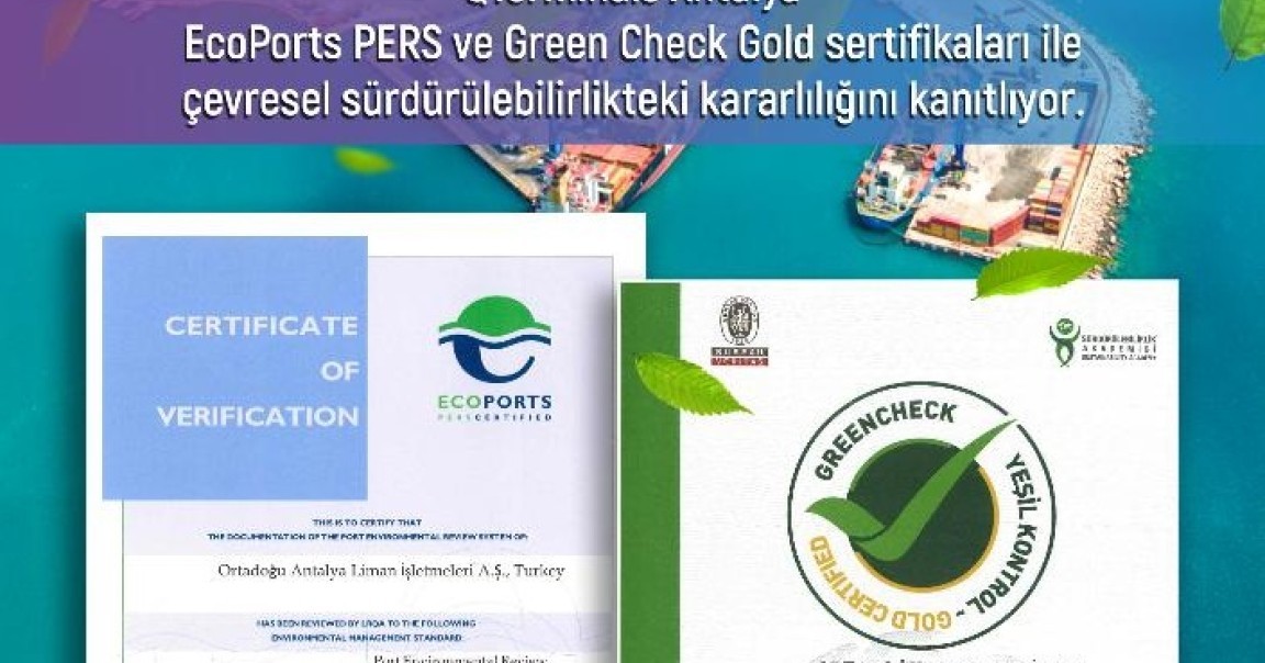 QTerminals Antalya, uluslararası denetimlerde sergilediği üstün performansla iki önemli çevre sertifikasına birden layık görüldü. Şirket, EcoPorts PERS Sertifikası’nı üçüncü kez, Green Check Gold Sertifikası’nı ise ikinci kez almaya hak kazandı. QTerminals Antalya Limanı çevresel sürdürülebilirlik alanındaki kararlılığını ve liderliğini aldığı sertifikalarla bir kez daha kanıtladı.