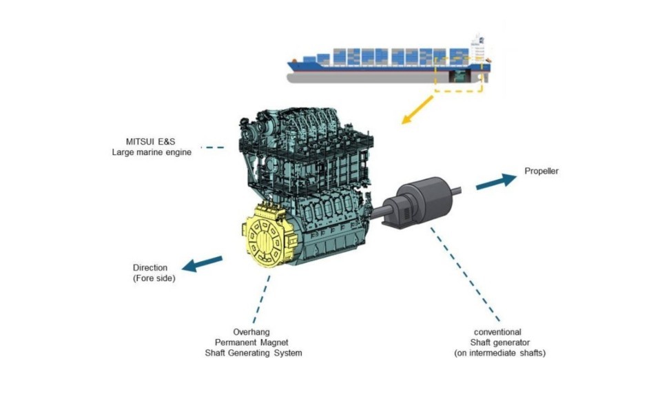 Mitsui E&S ile Taiyo Electric, büyük deniz motorları için Overhang Permanent Magnet Shaft Generating System (Sarkık Tip Daimi Mıknatıslı Şaft Jeneratör Sistemi) geliştirdi.